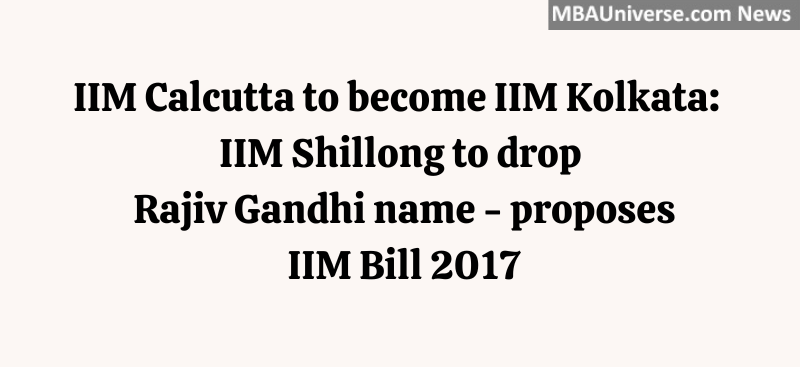 The oldest among 20 IIMs, the Indian Institute of Management Calcutta will become IIM Kolkata and Rajiv Gandhi Indian Institute of Management, Shillong will no longer carry the name of late Prime minister of India Rajiv Gandhi, if the IIM Bill 2017 tabled in Lok Sabha on February 9 has its way.