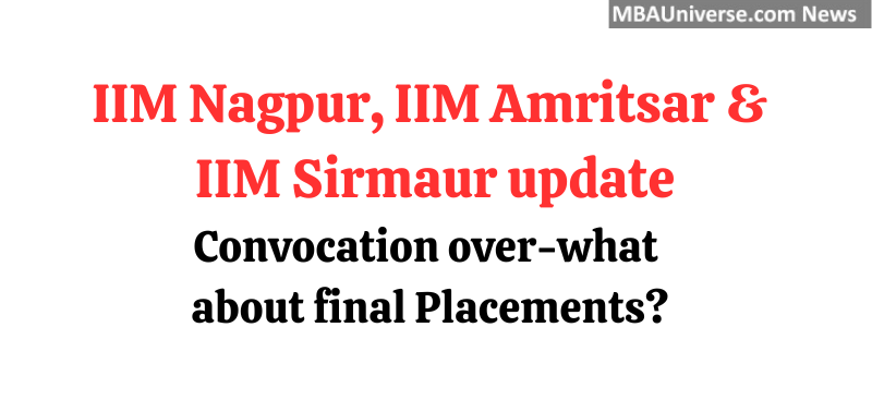 IIM Nagpur, IIM Amritsar and IIM Sirmaur, the 3 of the 7 newest IIMs are bidding farewell to their very 1st PGP 2015-17 batch but there is now news whether they have concluded their final placements 2017. MBAUniverse.com has remained in touch with the newest IIMs but so far the final placement statistics is concerned, none of the newest IIMs have been able to share the same. There is no mention of final placement in the speech of Prof. L S Murty Director IIM Nagpur on the occasion of Convocation 2017 held on April 14, 2017.