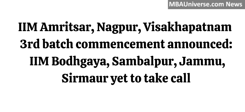 IIM Amritsar, IIM Nagpur and IIM Visakhapatnam have announced to commence their academic session 2017-18 in next few days while IIM Bodhgaya, IIM Jammu, IIM Sambalpur and IIM Sirmaur are yet to finalize the date to inaugurate the academic session for 3rd PGP 2017-19 batch
