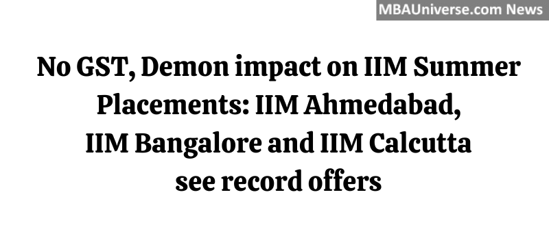 While the economy may have slowed down from 7.5-8.0% to about 5.5-6.0% due to impact of GST and Demonetization, but Placements at IIMs are off to a good start. Summer Placements held last week at IIM Ahmedabad, IIM Bangalore and IIM Calcutta saw record offers.