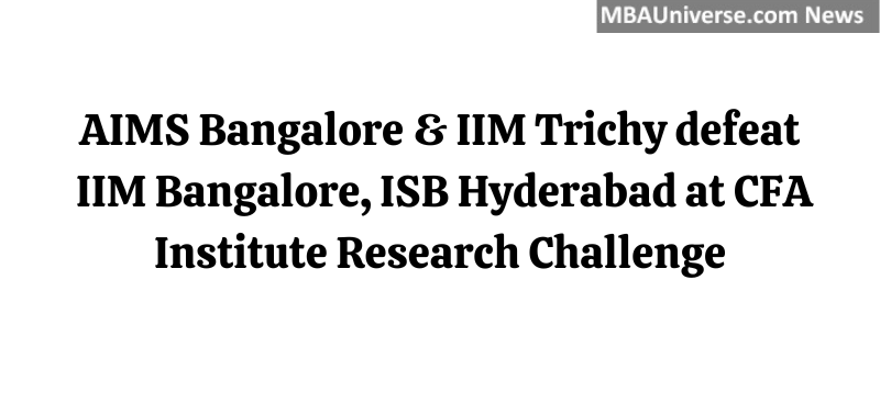AIMS Bangalore and IIM Trichy have won against IIM Bangalore, ISB Hyderabad, SVKMs NMIMS Bengaluru and TAPMI Manipal at CFA Institute Research Challenge in India Zonal finals.