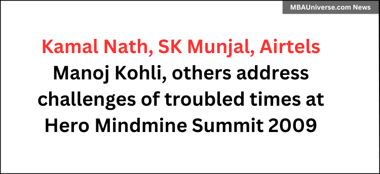 In his inaugural address, Mr Kamal Nath, said, With greater global competitiveness, we have challenges not only of growth but also of finding space in Global economy and therefore there is a compelling need for India to have interest rates that are globally competitive. Once liquidity turns into borrowings, Indias intellectual and entrepreneurial skills will drive up growth significantly. Appropriately themed Challenges of Troubled Times: Opportunities & Threats, the 2009 edition of Hero Mindmine Summit will look closer how these turbulent times may have an opportunity in itself.Sunil Kant Munjal, Chairman, Hero Corporate Services addressed audience of Indias corporate leaders in the inaugural session.