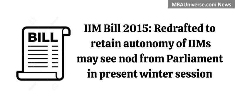 The much debated and opposed both by IIMs and PGDM B-schools, although on entirely different ground, the pending controversial IIM Bill 2015 may seek the nod of Parliament this winter session in the redrafted form that proposes to retain autonomy of IIMs to a large extent.