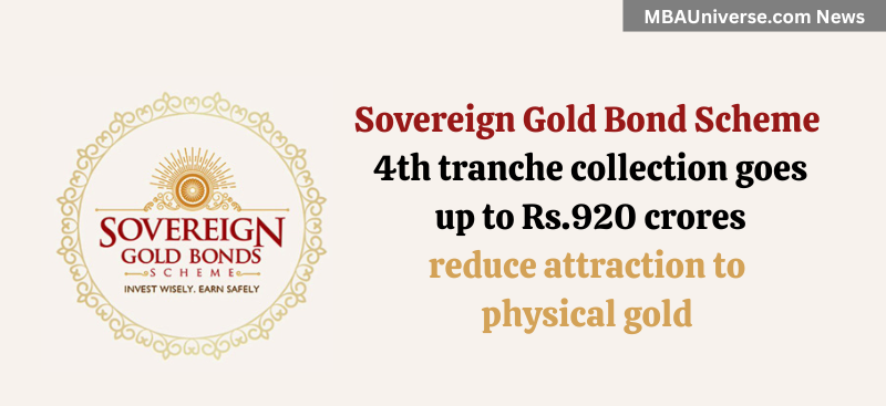 Sovereign Gold Bond Scheme: 4th tranche collection goes up to Rs.920 crores; reduces attraction to physical gold