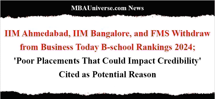 Indeed, as reported by MBAUniverse.com earlier, the MBA Placements 2024 season was unlike any other in last decade. The average and highest salaries dropped across almost all top B-schools. The recently released Business Today (BT) B-school Rankings 2024 has visibility changed in light of this development. Three of the top 10 B-schools including IIM Ahmedabad and IIM Bangalore seem to have dropped out of the popular BT Rankings. Business Today has acknowledged the absence of marquee B-schools and has suggested that the possible reason for top B-schools pulling out of the ranking is that the “poor placements that could impact their credibility”. IIM Calcutta is ranked as the top B-school in India by BT.