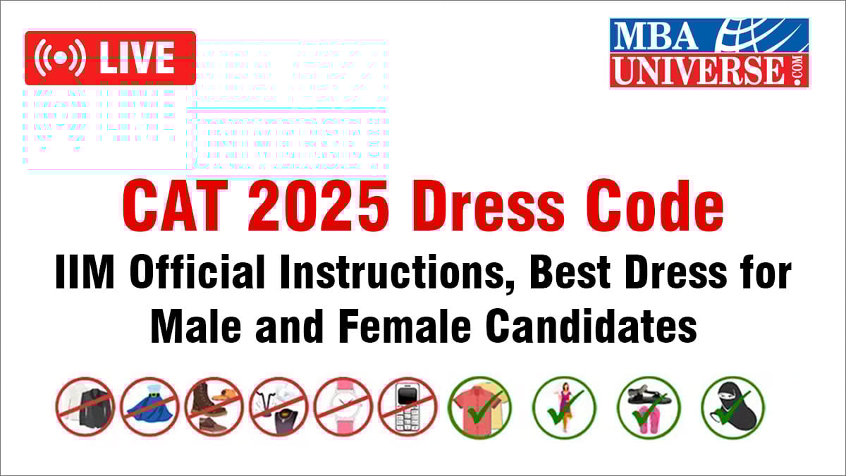 CAT Dress Code 2025: CAT 2025 exam is being held today on Sunday, November 30, 2025 in 3 slots. CAT 2025 Exam Slot 1 is over! Check CAT 2025 Slot 1 Analysis. Candidates taking the CAT exam should note that while there is no official CAT dress code, IIMs have issued important instructions for candidates taking CAT 2025 exam that relate to what they can wear to CAT exam centre. According to instructions issued by IIMs, candidates should NOT wear any jewellery or other items containing metal. Shoes / footwear with thick soles and garments with large buttons are also NOT permitted. Keep these CAT 2025 Exam Dress Code instructions in mind, candidates should wear a dress that does not violate instructions by IIMs, and will keep them comfortable throughout the CAT exam day. Read CAT 2025 dress code male and CAT 2025 dress code female in this article.