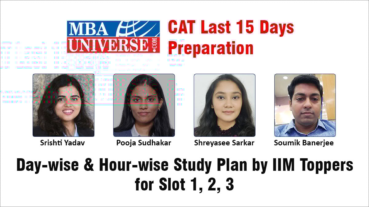With the release of CAT Admit Card, the countdown to CAT 2025 exam on November 30 has truly begun. Getting the CAT last 15 days preparation strategy right is crucial to score your maximum potential. Read this MBAUniverse.com article on CAT 2025 last two weeks preparation strategy that is based interviews with CAT Toppers studying at IIMs, SPJIMR, and MDI. Also read our CAT Day-wise and Hour-wise Study Plan, designed to help you balance Mocks, Revisions, Body Clock Adjustment, Nutrition, and Stress Management for Slot 1, Slot 2, and Slot 3