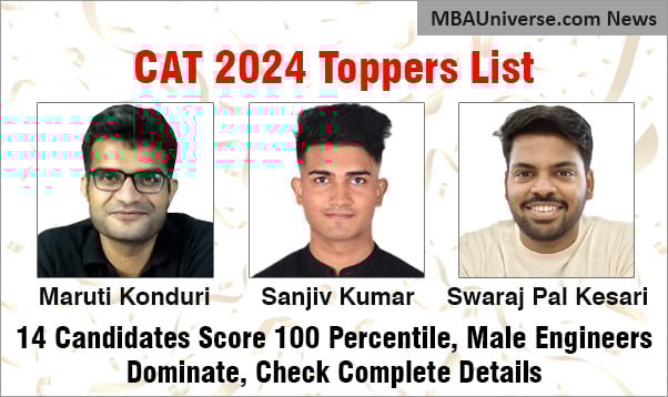 CAT Toppers 2024 list is out now after the release of CAT results on December 19, 2024! CAT 2024 Toppers, who have scored 100 percentiles, include Maruti Konduri, Vagish Nangia and Mani Praneeth Chilukuri. MBAUniverse.com presents CAT Toppers List and interviews with Toppers including Sanjiv Singh (CAT 2024 99.9 Percentile) and Swaraj Pal Kesari (CAT 99.95 Percentile). Also read complete details on Maruti Konduri, who has scored 100 percentiles in CAT for five years in a row!
