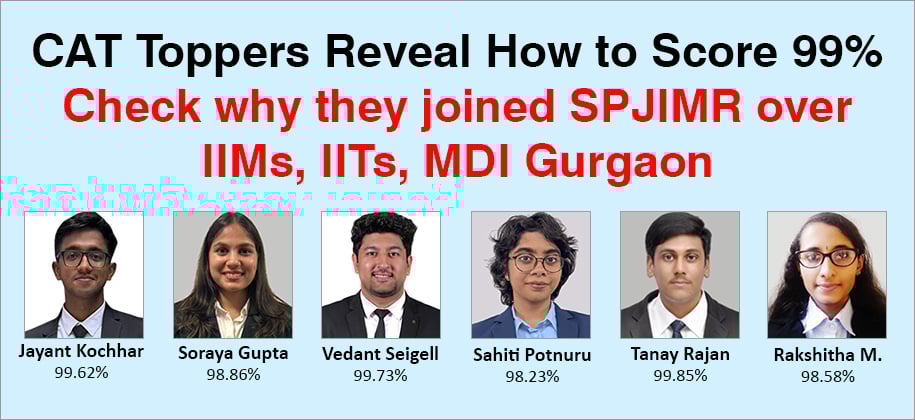CAT 2024 exam is round the corner and not much time is left for the CAT exam day which is on Sunday, November 24, 2024. The best CAT preparation tips can come from the CAT toppers themselves. To help our readers aiming at CAT 2024, MBAUniverse.com interviewed CAT 2023 toppers who scored high percentiles and were offered admission by IIMs, IITs, IIFT, MDI and other top B-schools but preferred to join SPJIMR Mumbai. These CAT toppers share their CAT preparation strategy and bare their weaknesses and how they won them over to crack CAT. They also share preparations for PI/WAT rounds and why they preferred joining SPJIMR instead of any other top B-school.