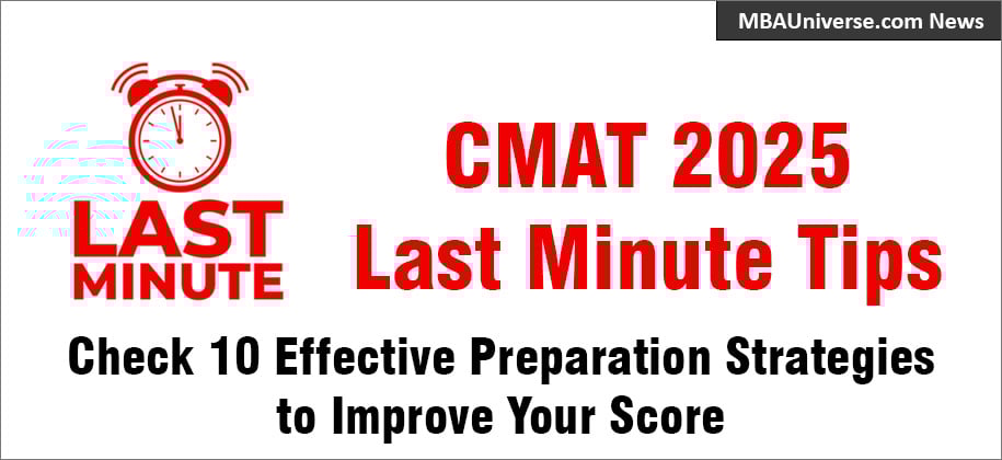 CMAT 2025 last minute tips reveal 10 effective CMAT preparation strategies that will help you improve your exam performance. CMAT is one of the largest national MBA entrance examinations. MBA Colleges Accepting CMAT 2025 include K J Somaiya Mumbai, Welingkar Mumbai, BIMTECH Greater Noida, IFMR Krea University, IMI Bhubaneswar and other 1000+ MBA Colleges. CMAT 2025 exam will be held on January 25, 2025. So, make the best use of next few days by following these CMAT last minute preparation tips. Continue reading this to improve your CMAT 2025 exam performance.