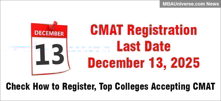 CMAT 2025 exam is conducted by National Testing Agency (NTA) on behalf of Government of India and is one of the most popular MBA entrance exams in India. More than 1000 MBA colleges in India will accept CMAT scores for MBA Admission 2024. CMAT Exam 2025 will be held on January 25, 2025. CMAT Registration Last Date 2025 is December 13, 2024. Read complete details on how to register, colleges accepted, exam fees, centers and more.
