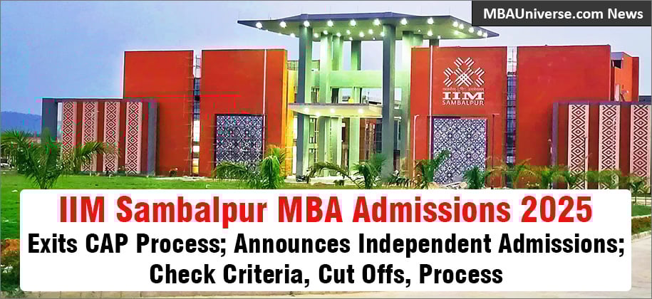 In a bold move, IIM Sambalpur has exited from Common Admission Process (CAP) 2025 from MBA Admissions 2025. IIM Sambalpur will conduct its own admission process for MBA and newly launched course MBA in Business Analytics programs. With departure of IIM Sambalpur, only 8 IIMs will participate in IIM CAP 2025. IIM Sambalpur has announced Cut Offs and Eligibility for Admission 2025. The approximate batch size is 320. IIM Sambalpur CAT Cut Off is 90 for Admission 2025. Read complete details.