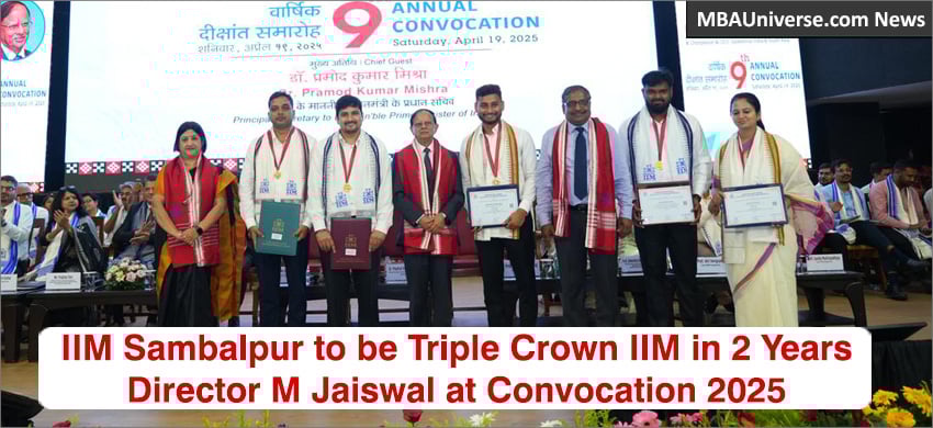 IIM Sambalpur held its 9th Convocation on April 19, 2025, marking a milestone moment with Director Prof. Mahadeo Jaiswal announcing the institute’s aspiration to achieve the prestigious ‘Triple Crown’ accreditation within the next two years. The ceremony saw the conferral of degrees to 370 students across five programs, with women constituting an impressive 60% of the graduating MBA batch -- reflecting the institute’s strong commitment to gender diversity. Distinguished policy makers and industry leaders, including Dr. P.K. Mishra, Principal Secretary to the Prime Minister, and Padma Shri Arundhati Bhattacharya, Chairperson of IIM Sambalpur, inspired the students to pursue excellence in management and leadership.