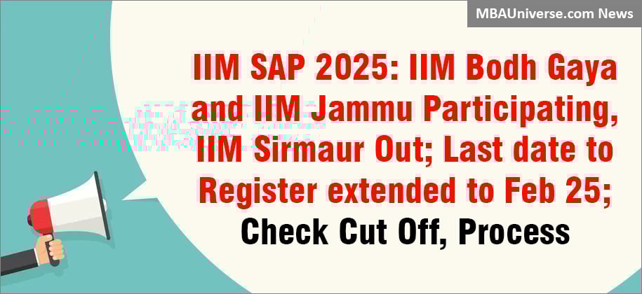 IIM SAP 2025 registration last date has been extended to February 25, 2025 till 11.59 PM. IIM SAP 2025 is being conducted jointly by IIM Bodh Gaya and IIM Jammu for their MBA Admission 2025. IIM Sirmaur is not participating in SAP 2025. To avoid clash of interview calls, SAP 2025 process will not include those who are shortlisted for the CAP 2025. IIM SAP 2025 Cut Offs are also out. Check complete details below.