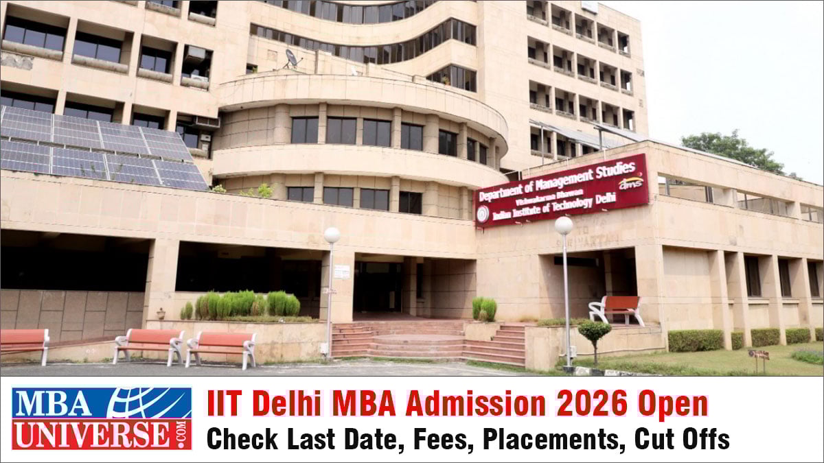 IIT Delhi MBA 2026 Admission: IIT Delhi MBA admission 2026 process is open. IIT Delhi MBA Admission 2026 last date to apply is January 26, 2026. IIT Delhi accepts only CAT 2025 Scores. Read this comprehensive article by MBAUniverse.com to know the key USPs, eligibility and admission criteria, CAT Cutoffs, Application Fee, MBA Fees and Placement of IIT Delhi MBA program. Also check how to fill IIT Delhi MBA Application Form 2026.