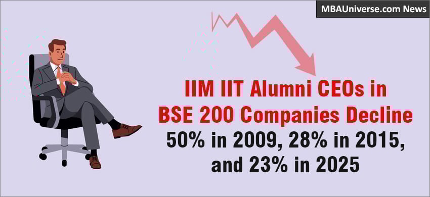 Long hailed as the gateway to India's corner offices, degrees from the Indian Institutes of Technology (IITs) and the Indian Institutes of Management (IIMs) are witnessing a significant decline in their dominance at the helm of India's top corporations. A study by EMA Partners reveals that a mere 23% of CEOs and Managing Directors leading BSE 200 companies in 2025 hold degrees from these premier institutions, a stark contrast to the 50% recorded in 2009. What are the implications of this trend for IIMs, IITs and other top India business schools? Read this MBAUniverse.com article for complete insights from the report, and its implications.