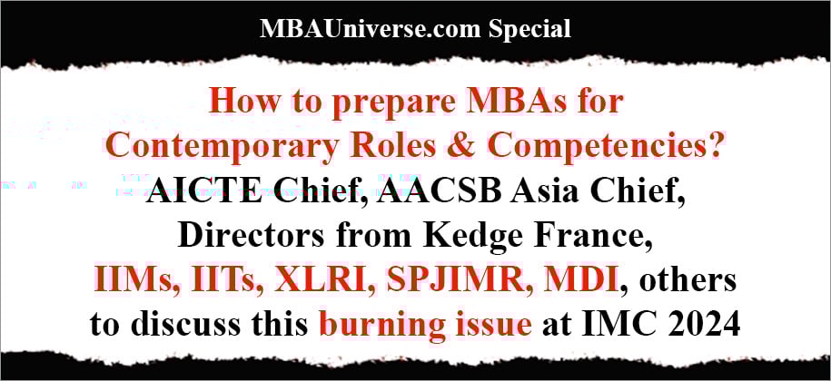 So how should MBA Program change to meet Industry expectations? What can progressive B-schools do to meet industry expectations. Chief of India’s MBA Regulator - AICTE, Asia Chief of World’s leading Accreditation body, Director General of Triple-Accredited Global B-schools and Directors from IIMs, IITs, XLRI, SPJIMR, MDI will deliberate on this burning issue at IMC 2024 on Sep 20-21.