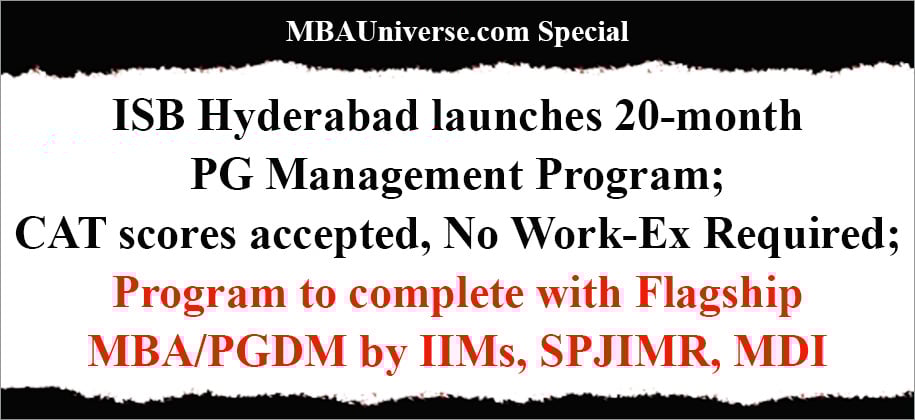 After carving out a niche in executive education, Indian School of Business (ISB) Hyderabad has now set its eyes on the bread and butter of IIMs and Top Private B-schools – their flagship MBA or PGDM program. ISB has launched a 20-month “Post Graduate Programme in Management for Young Leaders (PGP YL)”. This is a full-time residential management programme for MBA aspirants with zero to 2 years of work experience. Students can apply with CAT or GMAT/GRE scores.