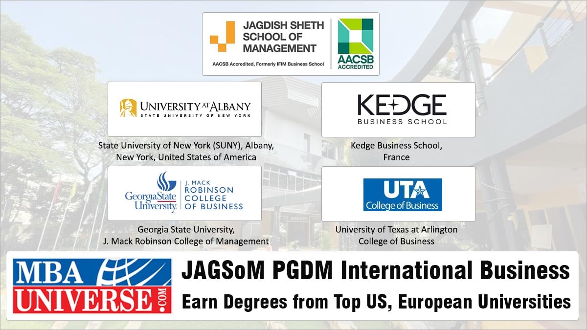 Jagdish Sheth School of Management (JAGSoM), an AACSB accredited and QS ranked leading business school, has announced the International University Partners, and the process for JAGSoM PGDM International Business (IB) admissions 2025. Four international partners, which are all top AACSB accredited business schools in the US and France, have been announced. JAGSoM PGDM IB is a unique two-year program that features one year of study in India followed by a second year at an international partner institution, allowing students to earn a dual degree. Read this MBAUniverse.com article for complete details about the partners, seats, fees, admission process and more.