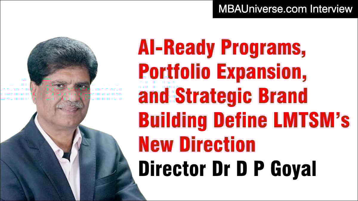 In this wide-ranging interview with MBAUniverse.com, Dr Goyal outlines how LMTSM is leveraging its technological legacy to design AI-ready programs, expand its academic portfolio with launch of new programs, strengthen industry and alumni engagement, and sharpen its institutional identity. He also reflects on AI’s impact on management education, placement trends, and the school’s roadmap for 2026. Edited excerpts from the interview follows.