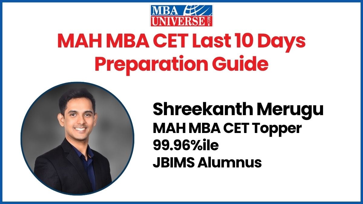 MAH MBA CET 2026 exam will be held on April 6, 7 and 8, 2026. With just a few days to go, MBAUniverse.com invited Shreekanth Merugu, JBIMS alumnus, MAH MBA CET Topper (99.96%ile in MBA CET 2020) and Co-Founder of The Top Percentile (TTP) to share his last-minute tips. Shreekanth shares that 10 days is enough time to meaningfully improve your MAH MBA CET score. He also says that MBA CET exam tests only two things: “Speed” & “Accuracy”. Read this exclusive article to improve your MAH MBA CET score in this last stretch.