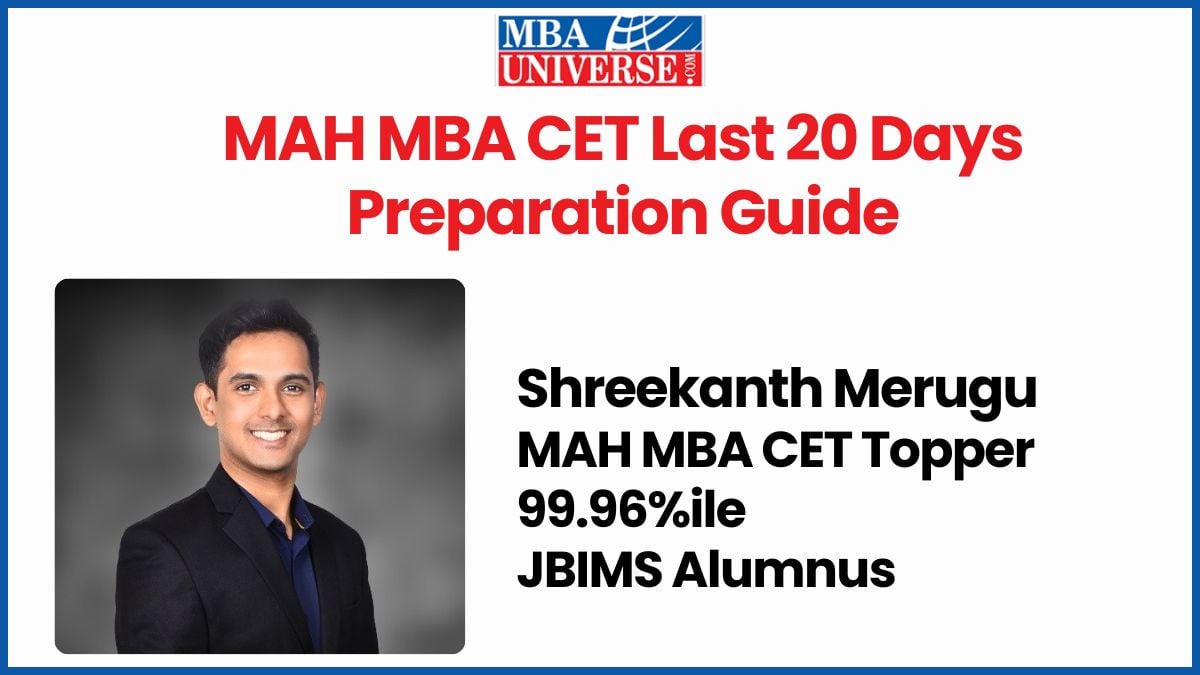 MAH MBA CET 2026 exam will be held on April 6, 7 and 8, 2026. With just a few days to go, MBAUniverse.com invited Shreekanth Merugu, JBIMS alumnus, MAH MBA CET Topper (99.96%ile in MBA CET 2020) and Co-Founder of The Top Percentile (TTP) to share his last-minute tips. Shreekanth shares that 20 days is enough time to meaningfully improve your MAH MBA CET score. He also says that MBA CET exam tests only two things: “Speed” & “Accuracy”. Read this exclusive article to improve your MAH MBA CET score in this last stretch.