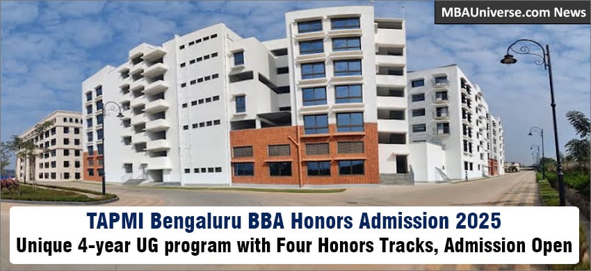 TAPMI, the AACSB accredited highly ranked B-school in India, offers a unique BBA Honors program with four Honors Tracks at the Bangalore campus of Manipal Academy of Higher Education (MAHE). The curriculum follows a progressive approach, with Year 1 focusing on multidisciplinary foundational courses, Year 2 introducing core business and technology subjects, and Year 3 allowing students to specialize, with an option to exit with a BBA degree. In Year 4, for the Honors track, students can choose from four pathways: a) Corporate Career, b) Entrepreneurship Track, c) Research Track leading to Ivy League PhD or d) Study-abroad track. TAPMI Bengaluru BBA Honors Admission 2025 last date is May 10, 2025. Apply Now. Read this article for complete information on TAPMI BBA (H) fees, eligibility, selection process and more.