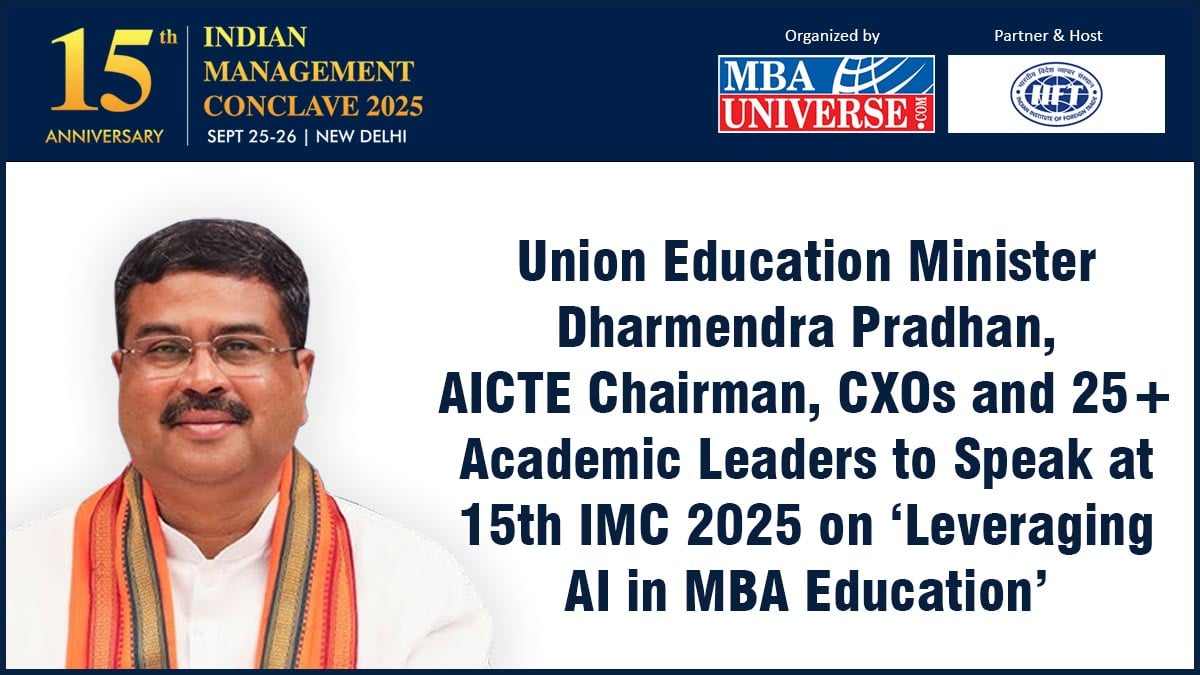The stage is set for the 15th anniversary edition of Indian Management Conclave (IMC), to be held at IIFT New Delhi on September 25–26, 2025! Organized by MBAUniverse.com since 2010, the IMC 2025 will bring together key Policy Makers, CXOs from McKinsey, Deloitte, Indigo Airline, and Academic Leaders from IIMs, IITs, ISB, XLRI, SPJIMR, MDI and other leading institutions. Chief Guest Shri Dharmendra Pradhan, Union Minister of Education, Government of India, shall deliver the Valedictory Address and Guest of Honour Dr. T. G. Sitharam, Chairman, AICTE, will deliver the Inaugural Address. Top B-schools and researchers will present their initiatives and papers in contention for the IMC Awards 2025 and IMC Research Conference Best Paper Awards. The Conclave is expected to draw more than 250 delegates from across India.
