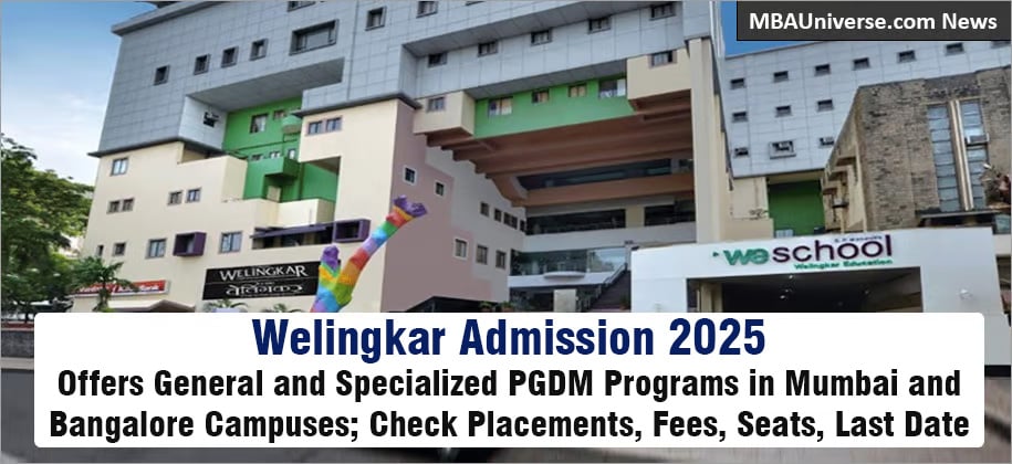 Welingkar Institute of Management Development and Research (WeSchool) is a leading management institution with campuses in Mumbai and Bengaluru. Welingkar Mumbai offers 2 years full time AICTE Approved MBA equivalent PGDM General, PGDM Business Analytics, PGDM Healthcare Management, PGDM Rural Management and other specialized programs. Similarly, Welingkar Bengaluru offers PGDM and other specialized programs. Welingkar Admission 2025 is open and last date to apply is March 21, 2025. Apply Now. Read complete details on Courses, Seats, Fees, Rankings, Placements, Admission Process below.