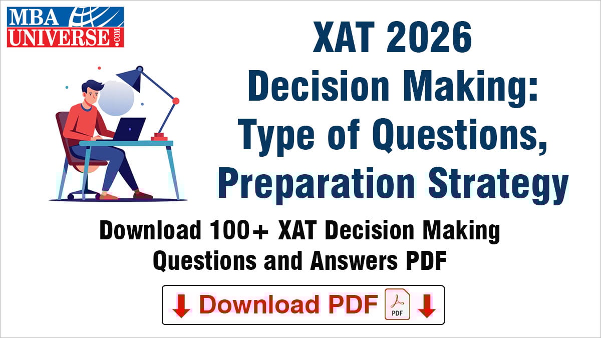 You can download XAT Decision Making Questions and Answers PDF from the link below. The questions are based on XAT previous year question papers from XAT 2024 and XAT 2025 exam. The cover all the different types of Decision-Making questions that appear in XAT exam.